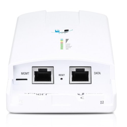 AirFiber AF-5XHD má 2× RJ45 Gigabitové ethernetové porty . Prvý slúži pre dáta, druhý port je určený pre Management alebo ako záložný pre PoE napájanie.