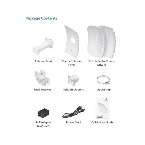 Pre vysoké prenosové rýchlosti jednotka využíva štandard 802.11a/na revolučný protokol AirMAX (TDMA) na dosiahnutie nízkych latencií. Anténny systém sa skladá z 23dBi antény . S jednotkami LiteBeam je tak možné pripojiť klienta až na vzdialenosť 30 km.