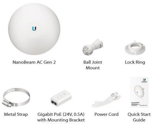 NanoBeam (NBE-5AC-Gen2) je kompletná vonkajšia jednotka druhej generácie s 19 dBi MIMO 2x2 anténami pre pásmo 5 GHz vhodná ako klientská jednotka. NanoBeam podporuje normu 802.3ac, vďaka tomu dosahuje priepustnosť až 450 Mbps.