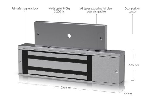 Magnetický zámok s ochranou proti zlyhaniu pre vstupné a výstupné dvere, ktorý sa pripája k prístupovému rozbočovaču UniFi (UA Hub). - Nosnosť až 540 kg - Možno inštalovať na širokú škálu typov dverí* …