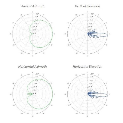 Vyžarovací uhol antény je 137° (6 dB) v horizontálnej polarizácii a 118° (6 dB) vo vertikálnej polarizácii.