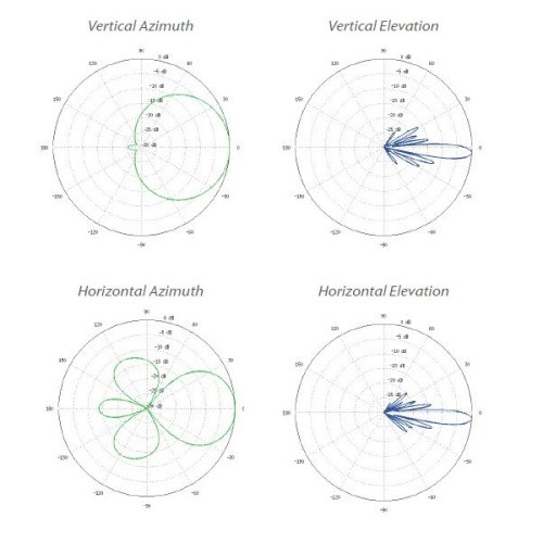 Vyžarovací uhol antény je 72° (6 dB) v horizontálnej polarizácii a 93° (6 dB) vo vertikálnej polarizácii.