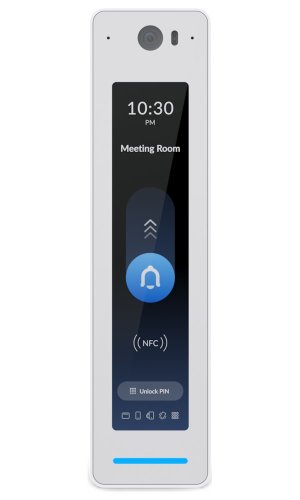 Vnútorná/vonkajšia čítačka NFC tretej generácie a interkom s podporou Apple Touch Pass . Dvere jednoducho odomknete pomocou tváre, karty NFC, kódu PIN, mobilnej aplikácie UniFi Identity či Touch Pass.