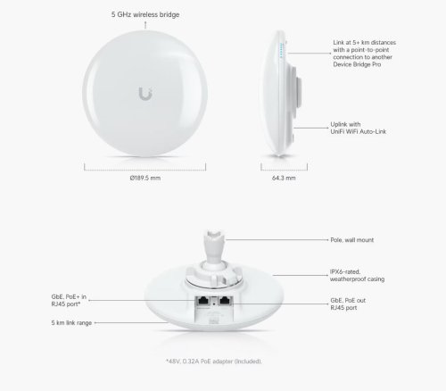 Prepojte sa na vzdialenosti 5+ km pomocou pripojenia point-to-point k inému zariadeniu Bridge Pro alebo bezproblémovo uplink pomocou UniFi WiFi Auto-Link