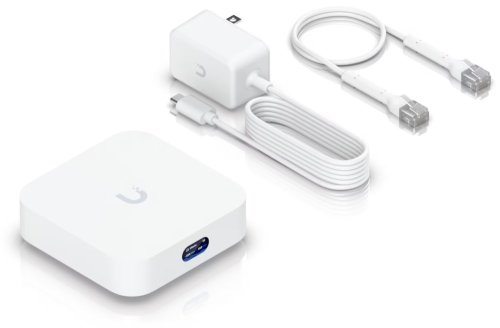 Porty: 1× GbE RJ-45 LAN, 1× GbE RJ-45 WAN, 1× USB-C (napájanie)