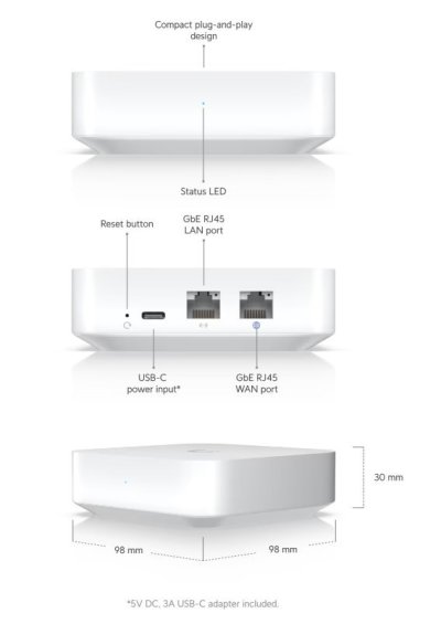 UniFi Gateway Lite je novinkou od spoločnosti Ubiquiti. UniFi Gateway Lite je tichá, kompaktná, výkonná brána UniFi s kompletnou sadou pokročilých funkcií routovania a zabezpečenia. Zariadenie je vybavené 1x Gigabit LAN konektorom a 1x Gigabit WAN konektorom. Tento produkt sa skvele hodí pre malé firmy, pre ktoré vytvára skvelý balans medzi cenou a výkonom zariadenia. Pre základnú správu zariadenia je možné využiť smartfón s Bluetooth, komplexná správa prebieha rovnako ako u iných UniFi zariadení cez HW/SW kontrolér. Unifi Gateway Lite je až 10X rýchlejší oproti USG a podporuje rôzne druhy VPN, rovnako tak IPv6, DHCP server a oveľa viac.