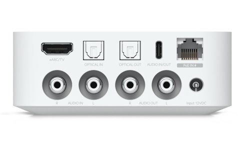 PoE Audio Port ponúka komplexné možnosti pripojenia vrátane analógových RCA vstupov/výstupov, HDMI eARC, optického vstupu/výstupu a univerzálneho USB-C portu. Môžete tak pripojiť CD prehrávač, gramofón alebo iný zdroj zvuku a streamovať audio do ďalších miestností, alebo naopak využiť výstupy na pripojenie aktívnych reproduktorov či externých zosilňovačov.