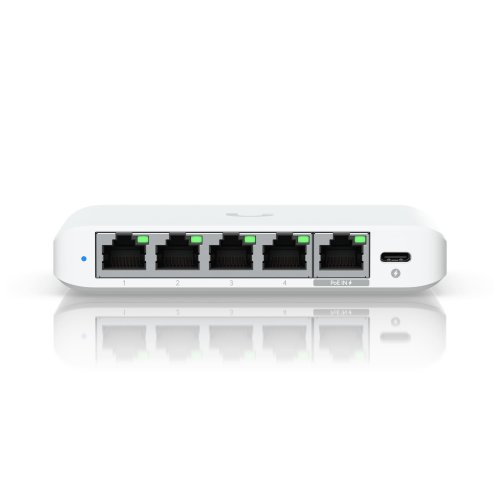 Kompaktný, 5portový 2,5G switch, ktorý je možné napájať pomocou PoE alebo USB-C adaptéra.