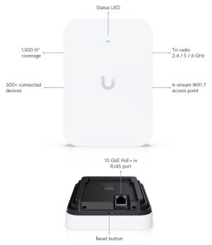 Access point podporuje najnovší štandard 802.11be s technológiami ako EHT (Extremely High Throughput) a kanálmi šírky až 320 MHz v pásme 6 GHz. Spätná kompatibilita so štandardmi Wi-Fi 6, Wi-Fi 5 a 802.11n zaisťuje pripojenie všetkých zariadení.
