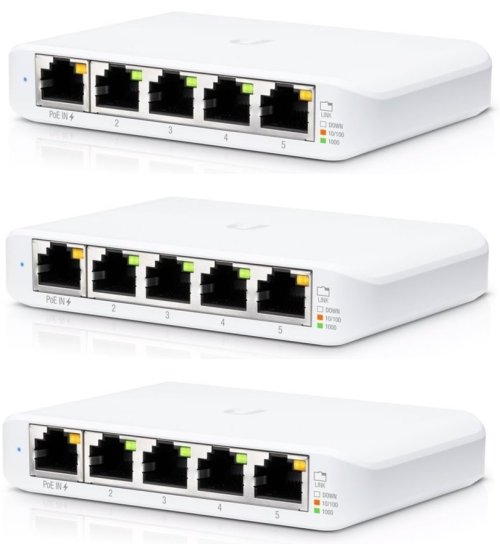 USW-Flex-Mini je maličký 5-portový Gigabitový switch so správou cez UniFi Network application od Ubiquiti v desktop prevedení s prvým portom podporujúcim PoE In.