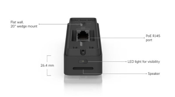 UniFi Protect Doorbell Lite vám umožní sledovať návštevy vo vysokom rozlíšení, s múdrou detekciou osôb, vozidiel i zvierat, nočným videním a obojsmerným audio, všetko v odolnom dizajne napájanom cez PoE a ľahko integrovanom do UniFi Protect.