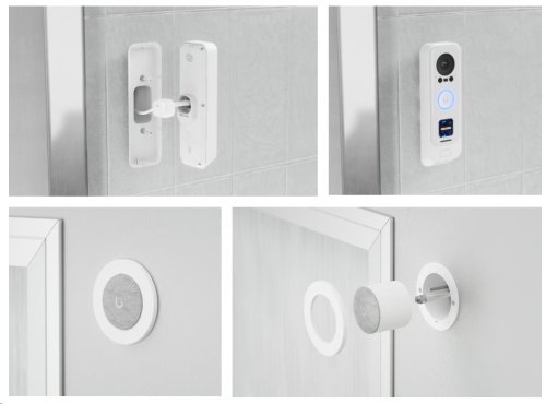 UVC-G4 Doorbell Pro PoE Kit je sada vnútorného zvončeka a vonkajšieho tlačidlového videozvonku s prenosom dát iba po ethernete. Vonkajšia jednotka je vybavená prednou primárnou 5MP kamerou a spodnou sekundárnou 8MP kamerou na zobrazenie toho, čo sa nachádza na rohožke predo dvermi. Hlavná kamera domového zvončeka je vybavená IR LED pre poskytovanie lepšieho nočného videnia, ktoré v kombinácii so spodným osvetlením zaisťuje spoľahlivo jasné sledovanie po celý deň. Zvonček je tiež vybavený funkciou potlačenia ozveny a obojsmerným audiom pre komunikáciu s návštevníkmi. Navyše má programovateľný displej, ktorý umožňuje dávať upozornenia alebo pokyny na doručenie kuriérom. Sada je navrhnutá ako výkonný plug-and-play bezpečnostný nástroj a je možné ho nastaviť a nakonfigurovať v priebehu niekoľkých minút pomocou aplikácie UniFi Protect.