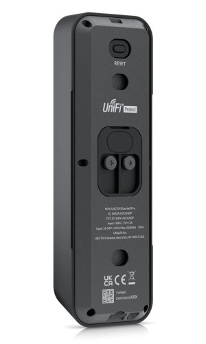 UniFi Protect G4 Doorbell Pro je Wi-Fi video zvonček vybavený primárnou 5 Mpx kamerou a sekundárnou 8 Mpx kamerou (napr. pre prezeranie zásielok). Ďalej je potom vybavený vstavaným programovateľným 1,3" displejom, LED svetlom, obojsmernou zvukovou komunikáciou a čítačkou odtlačkov prstov a NFC kariet*.