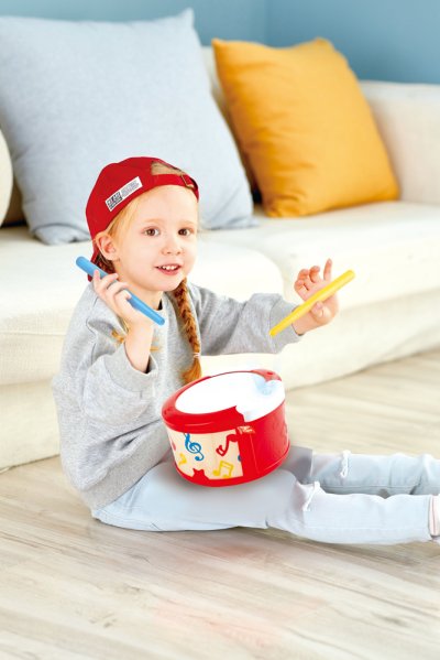 Naučte sa hrať na bubon. Pomôžte svojmu dieťaťu objaviť jeho hudobný talent. Tento silikónový bubienok učí deti tempu a rytmu prostredníctvom dvoch rôznych hudobných režimov a navádzacích svetiel. Predstavte svojmu dieťaťu základnú hru s tréningovým módom rytmu a precvičte si jeho načasovanie v šiestich jednoduchých rytmoch. Akonáhle to zvládnu, môžu prejsť do režimu melódií a hrať sa so skutočnými skladbami, a to jednoducho prepnutím prepínača na boku bubna. Tieto dva režimy pomáhajú malým deťom rozvíjať logické myslenie, jemnú motoriku, trpezlivosť a zároveň sa aj bavia. Bubon je dodávaný s dvoma paličkami a praktickým vstavaným držiakom, aby sa nestratili. Pomocou nich alebo rúk vydávajte jemné zvuky bubna. Hrať môžete aj na vypnutom bubienku. Bubienok sa sám vypne po 5 minútach nečinnosti. Rozmer: 19 x 10,5 x 16,5 cm. Rozmer balenia: 18,3 x 24,2 x 18,5 cm. Batérie: 3 x AAA (batérie sú súčasťou balenia). Vek: 1+. Video: https://www.youtube.com/watch?v=mi2VoFr3_-U
