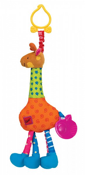 Žirafa na zavesenie na kočík alebo nad postieľku upútava vizuálne, hmatové aj sluchové zmysly dieťaťa. Žirafa je ušitá z rôznych materiálov a pri pohmate šuštia.