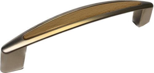 Kombinovaná jednodielna úchytka z galvanicky pokovovanej zliatiny zinku s vloženou plastovou imitáciou dreva, balená vrátane skrutiek M4 na uchytenie.