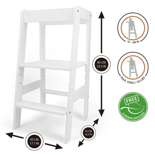 3. Dieťa môže vyliezť na výukovú vežu samostatne, schod od podlahy je vo výške 20 cm, čo pomáha dieťaťu dostať sa na vežu bezpečne.