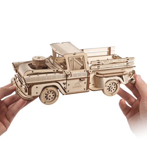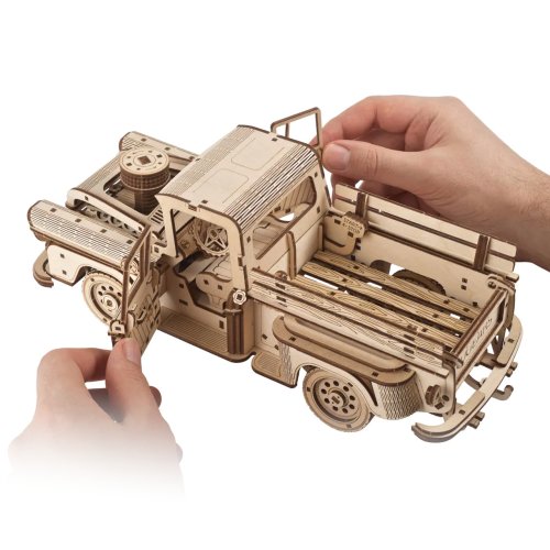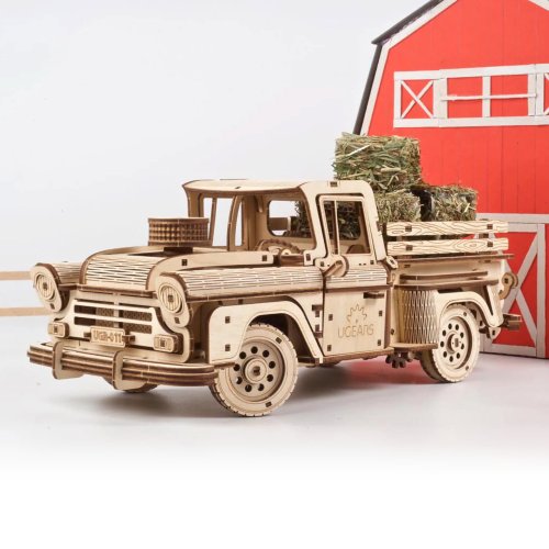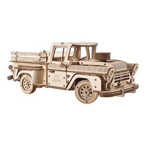 Žiadny náklad nie je dosť ťažký! Stavebnica nákladiaku vyrobená z preglejky. Vráťte sa do časov, kedy ste na opravu motora svojho auta nepotrebovali titul z informatiky! Pokiaľ sa nezľaknete žiadnej práce ako tento neúnavný ťahúň, bude pre Vás jeho stavba hračkou. Každého fanúšika veteránov nadchne svojimi tvarmi, ktoré boli inšpirované klasickým americkým pick-upom Chevrolet 3100 z roku 1959. Jeho pohon zaisťuje výkonný pružinový motor patriaci medzi špičku ponuky modelov UGEARS, nákladiak tak na jedno natiahnutie prejde až šesť metrov a na svojej korbe uvezie kilogramu nákladu! Je vybavený nielen prevodovkou umožňujúcou spätný chod a prevádzku na neutrál, ale aj diferenciálom, vďaka ktorému ponúka výnimočné manévrovacie schopnosti! Smer jazdy je možné ľahko ovládať a zaistiť, vozidlo sa tak môže po zvolenej trase pohybovať aj úplne samostatne. S dokonalým uspokojením potom môžete sledovať prácu odpružených náprav pri jazde s nákladom av teréne. Funkčnými ozdobami modelu sú aj ďalšie mechanické detaily. Dvere môžete otvárať zvonku aj zvnútra a kapota ukrýva motor, ktorý sa počas prevádzky realisticky otriasa. Ukážte ramená a usporiadajte závody s ďalšími modelmi UGEARS! Vybavené detailným návodom na zostavenie. Hlavné vlastnosti:460 precízne vyrezaných dielikovvysoká obtiažnosť zostavenieotvárateľné dvere a kapotavýsledný model je riaditeľný a schopný samostatnej jazdy vrátane spiatočkynavrhnuté a vyrobené na Ukrajine