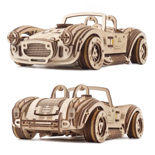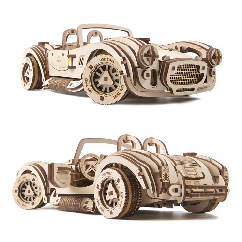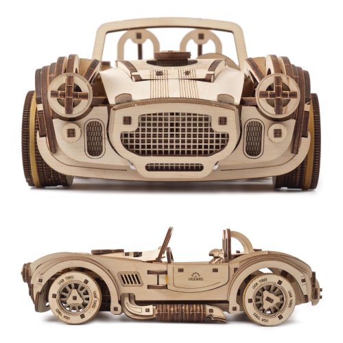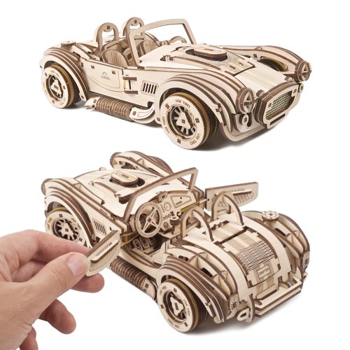 Skroťte beštiu driemajúcu v legendárnom Shelby Cobra! Stavebnica závodného auta vyrobená z preglejky. Dajte stavbou vyniknúť jeho nezameniteľným tvarom a nechajte sa pri tom uchvátiť funkčnými detailmi v podobe otvárateľných dvierok, kapoty a kufra. Auto disponuje najvýkonnejším pohonom z celej ponuky vozidiel UGEARS, je zaisťovaný pružinovým mechanizmom, vďaka ktorému pretekár prejde aj viac ako osem metrov! Pohon je vybavený spúšťou a prevodovkou umožňujúcou prevádzku na voľnobeh aj spiatočku. V závislosti na jazdnom povrchu a žiadanom charaktere jazdy je možné kolesá auta obuť prúžkami gumy. Či už teda preferujete jazdu šmykom, alebo dokonalú priľnavosť na jazdu vpred, model Vám svojimi možnosťami vychádza v ústrety. Pre istú jazdu v oboch disciplínach je tiež vybavený brzdou riadenia, takto kontrolované vozidlo môžete pri jazde nerušene a spokojne sledovať. Výnimočný darček pre všetkých, ktorí radi trhajú asfalt! Usporiadajte preteky s ďalšími modelmi UGEARS a nechajte ich v prachu ďaleko za sebou! Vybavené detailným návodom na zostavenie. Hlavné vlastnosti:370 precízne vyrezaných dielikovvysoká obtiažnosť zostaveniaotvárateľné dvere, kapota i kuforvýsledný model je riaditeľný a schopný samostatnej jazdy vrátane spiatočkynavrhnuté a vyrobené na Ukrajine