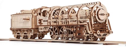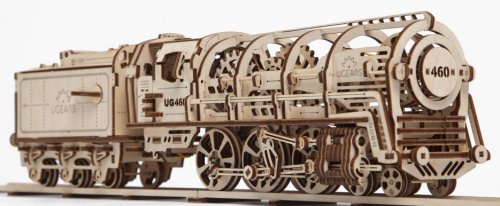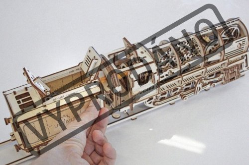 Zlatou érou železnice. Stavebnica parnej lokomotívy s tendrem vyrobená z preglejky. Tender má strešné dvierka a ponúka úložný priestor aj pre prípad, že model bude stáť vo vitríne. Mechanika je do detailu prepracovaná, vy tak môžete pozorovať pohyb kľukového mechanizmu dvojkolesia modelu. Lokomotíva je zbavená plášťa, a možno tak pozorovať aj chod súkolia vo vnútri. Vďaka naťahovaciemu mechanizmu je model schopný jazdy. Má funkčnú prevodovku pre voľnobeh a spiatočku. Môže sa pýšiť ďalšími mechanickými podrobnosťami, dverami kabíny rušňovodiča, sklopným rebríkom, dvierkami strešnej ventilácie, alebo aj spriahadlom. Lokomotíva je posadená na krátkom rovnom úseku trate, ktorý je možné rozšíriť stavebnicou prejazdu. Medzi ponúkaným traťovým príslušenstvom nájdete aj model nástupišťa, s ktorým prehĺbite celkový zážitok zo stavby a prevádzky modelu. Usporiadajte preteky s ďalšími modelmi UGEARS! Vybavené detailným návodom na zostavenie. Hlavné vlastnosti: 443 precízne vyrezaných dielikovvysoká obtiažnosť zostavenieúložný priestormnožstvo mechanických detailovrozšíriteľný o bohaté príslušenstvovýsledný model je schopný samostatnej jazdy vrátane spiatočkynavrhnuté a vyrobené na Ukrajine
