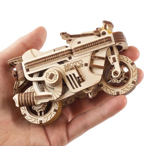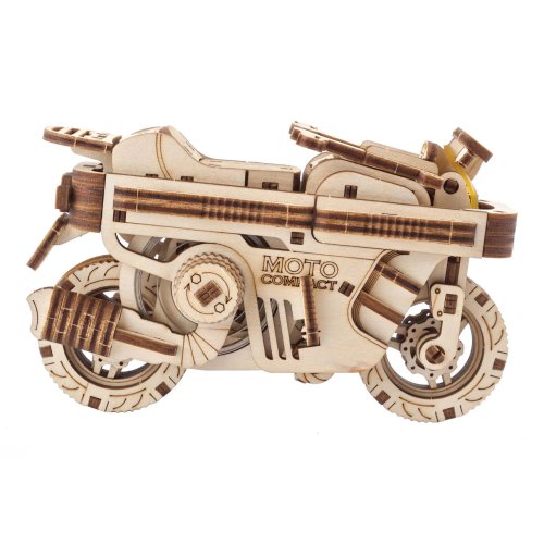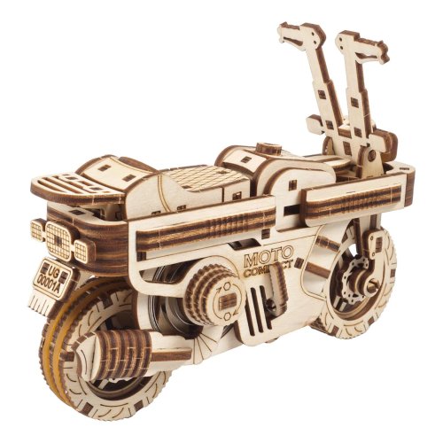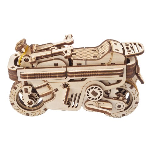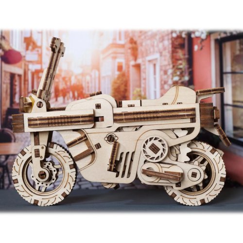 S vetrom o závod! Stavebnica skladacieho skútra vyrobená z preglejky. Zakúste výzvu pri stavbe jedinečného dvojstopového vozidla a pocit slobody, keď ho spustíte na dráhu. Vyniká dômyselnou kompaktnou konštrukciou, ktorá umožňuje sklopenie chúlostivejších častí modelu pre jeho jednoduchší a bezpečnejší transport, napríklad vo vrecku batohu. Disponuje výkonným naťahovacím pohonom, ktorý zaisťuje kovová pružina s dlhou životnosťou. Na jedno natiahnutie model prejde až dva metre. Jednoduchou spúšťou za sedadlom môžete ovládať štart a natočením riadidiel aj smer jeho jazdy. K istej jazde do zákruty je skúter vybavený výsuvnými opornými kolieskami. Atraktivite mechaniky modelu prispievajú odpružené nápravy, ktoré zároveň s pogumovaným zadným kolesom zlepšujú kontakt s dráhou. Tvorcovia pri návrhu mysleli aj na také detaily, ako sú výklopné stúpačky, výsledok tak určite poteší každého pravoverného nadšenca modelárstva a motocyklov. Nezabudnite nakoniec zorganizovať preteky aj s ďalšími modelmi UGEARS! Vybavené detailným návodom na zostavenie. Hlavné vlastnosti:192 precízne vyrezaných dielikovnízka obtiažnosť zostavenievýsledný model je riaditeľný a schopný samostatnej jazdynavrhnuté a vyrobené na Ukrajine