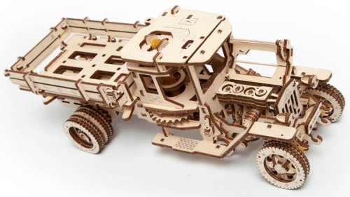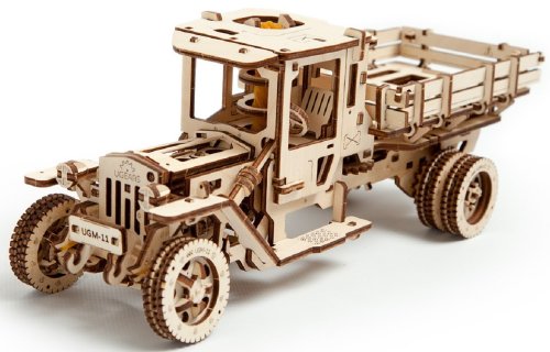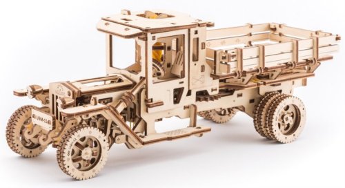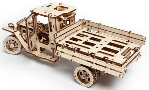 Závozníkom éry prohibície. Stavebnica nákladného vozidla vyrobená z preglejky. Patrí medzi najnáročnejšie modely v ponuke, jeho kompletizácia Vás bude obzvlášť tešiť. Korba vozidla má sklopné bočnice a je pripravená pre Vaše vizitky. Mechanika je do detailu prepracovaná, a vy tak môžete pozorovať pohyb piestov motora. Vozidlo je riaditeľné a vďaka naťahovaciemu mechanizmu je schopné jazdy. Má funkčnú prevodovku pre voľnobeh a spiatočku. Môže sa pýšiť ďalšími mechanickými podrobnosťami, plynovým pedálom/ovládačom rýchlosti a ručnou brzdou. Jazdná dynamika slúži odpružená predná náprava a pogumovanie kolies tiež zaisťuje spoľahlivý kontakt s povrchom jazdnej dráhy. Ako príslušenstvo je k nákladiaku ponúkaná celá sada modifikácií, s ktorou prehĺbite celkový zážitok zo stavby a prevádzky modelu. Usporiadajte preteky s ďalšími modelmi UGEARS! Vybavené detailným návodom na zostavenie. Hlavné vlastnosti: 420 precízne vyrezaných dielikovvysoká obtiažnosť zostavenieotváracie dvere a kapotaodpružená predná náprava, pogumovanie kolrozšíriteľný o bohaté príslušenstvovýsledný model je riaditeľný a schopný samostatnej jazdy vrátane spiatočkyovládanie rýchlosnavrhnuté a vyrobené na Ukrajine