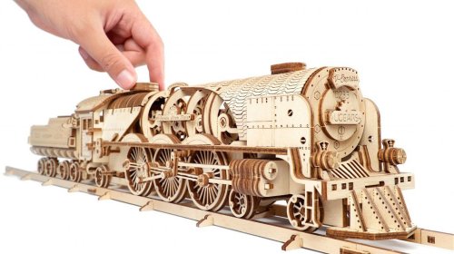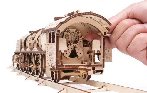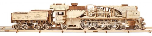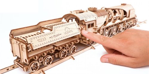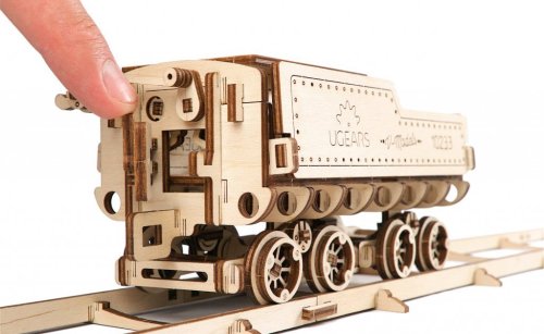 Plnou parou priemyselnou revolúciou. Stavebnica parnej lokomotívy s tendrem vyrobená z preglejky. Tender má odklápacie boky a ponúka úložný priestor aj pre prípad, že model bude stáť vo vitríne. Mechanika je do detailu prepracovaná, vy tak môžete pozorovať pohyb kľukového mechanizmu dvojkolesia modelu. Lokomotíva je zbavená plášťa, a možno tak pozorovať aj chod súkolia vo vnútri. Vďaka naťahovaciemu mechanizmu je model schopný jazdy, na jedno natiahnutie prejde až 4 metre. Má funkčnú prevodovku pre voľnobeh a spiatočku. Môže sa pýšiť ďalšími mechanickými podrobnosťami, dverami kabíny rušňovodiča, dvierkami ohniska a strešnej ventilácie, alebo aj spriahadlom. Lokomotíva je posadená na až 2 metre dlhom rovnom úseku trate. Medzi ponúkaným traťovým príslušenstvom nájdete model nástupišťa, s ktorým prehĺbite celkový zážitok zo stavby a prevádzky modelu. Usporiadajte preteky s ďalšími modelmi UGEARS! Vybavené detailným návodom na zostavenie. Hlavné vlastnosti: 538 precízne vyrezaných dielikovvysoká obtiažnosť zostavenieúložný priestormnožstvo mechanických detailovrozšíriteľný o model nástupišťavýsledný model je schopný samostatnej jazdy vrátane spiatočkynavrhnuté a vyrobené na Ukrajine