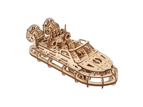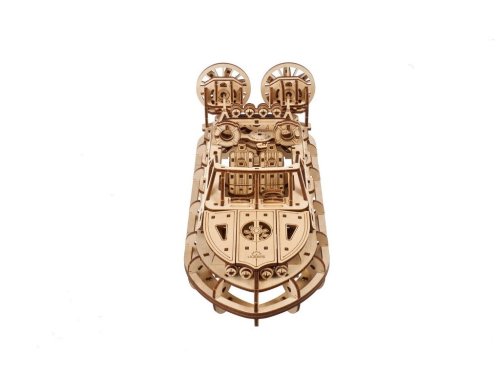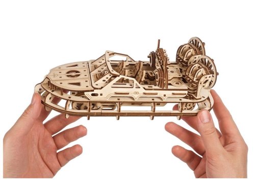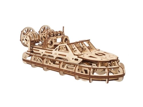 Záchranné vznášadlo. Tento drevený model je poháňaný pružinovým motorom s navíjacím račňovým kľúčom, umiestneným na podvozku plavidla. Spínač Štart/Stop vám umožňuje natiahnuť motor desiatimi otáčkami v smere hodinových ručičiek, potom aktivovať motor a vďaka dvojitej vrtuli napodobňuje jemné kývavé pohyby skutočného vznášadla. Vynikajúci realizmus, šikovný dizajn a pozornosť k detailu sú charakteristickými znakmi modelov Ugears. Hlavné vlastnosti: doba zostavenia - cca 6 hodťažnosť strednýnávod v 11 jazykochstredná obtiažnosťnavrhnuté a vyrobené na Ukrajine383 dielikov