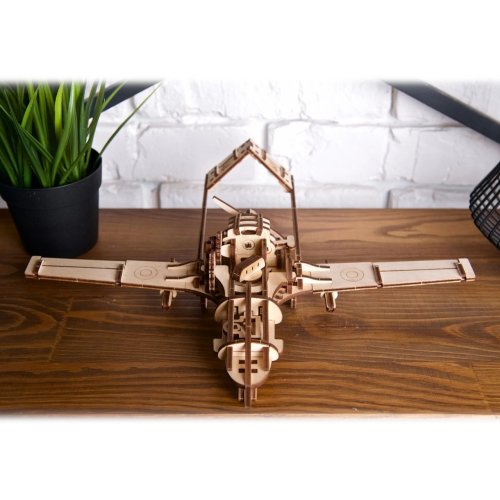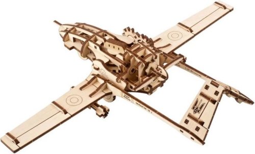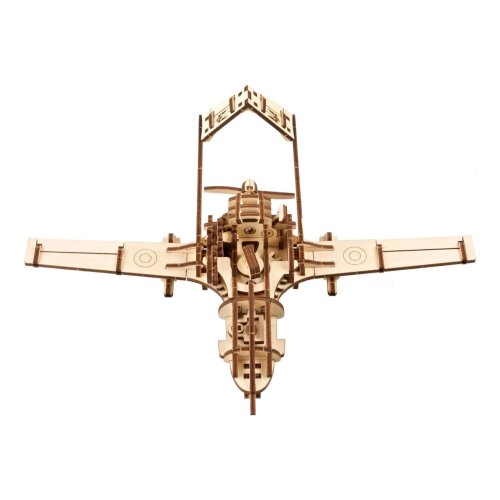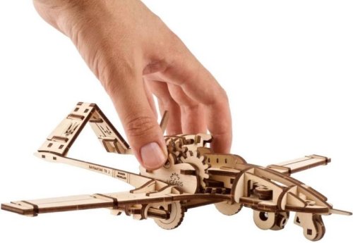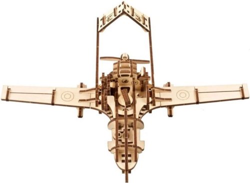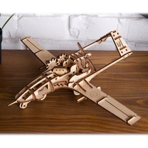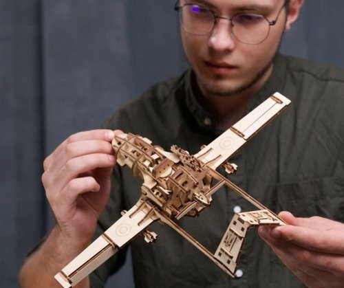 V mene hrdosti a úspechu! Stavebnica bezpilotného lietadla vyrobená z preglejky. Jedinečný stroj sa zapísal do sŕdc a myslí vojakov i bežných ľudí vďaka radu úspechov, ktoré boli s jeho pomocou dosiahnuté pri obrane celistvosti územia Ukrajiny. Pôvodom turecký Bayraktar (česky Vlajkonoš) patrí medzi menej nákladné, pritom však spoľahlivé a vysoko univerzálne bojové prostriedky. Vďaka svojej veľkosti a manévrovacím schopnostiam sa osvedčil najmä v boji s konvenčnými systémami protivzdušnej obrany. Stavbou a vystavením jeho modelu si môžete pripomenúť všetky malé víťazstvá i dôležité prejavy medzinárodnej solidarity, ktoré sú s týmto unikátnym dronom novo spojené. Pomyselným srdcom naťahovacieho pohonu lietadla je odolná a spoľahlivá kovová pružina. Po niekoľkonásobnom otočení zabudovaným kľúčom je stroj pripravený na spustenie pomocou malej postrannej páčky. Ak je model umiestnený na rovnom povrchu, po odštartovaní pozvoľna posúva. Zároveň s tým sa otáča jeho tlačná vrtuľa, ktorá pri pohybe vydáva autentický bzučivý zvuk. Vďaka premyslenému návrhu nebudete ochudobnení o pútavý pohľad na pohybujúce sa súkolia pohonu. Atraktivitu miniatúry potom zvyšuje aj množstvo drobných detailov, pohyblivá sledovacia kamera umiestnená pod trupom, funkčné vztlakové aj smerové klapky a odnímateľné rakety zavesené pod krídlami. Vybavené detailným návodom na zostavenie. Hlavné vlastnosti: 125 precízne vyrezaných dielikov stredná obtiažnosť zostavenie drobné mechanické a voľne uložené detaily výsledný model je schopný samostatnej jazdy navrhnuté a vyrobené na Ukrajine