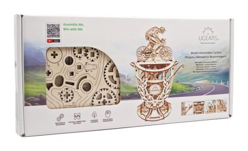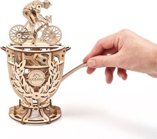 Ugears Cyklista stavebnice pohára s mechanickým cyklistom, vyrobená z preglejky. Pohár sa tvarom aj detailmi stane okrasou Vašej vitríny. Mechanický cyklista je uvádzaný do pohybu pomocou páky. Vďaka zvlášť prispôsobenej konštrukcii môžete pozorovať pohyb prepracovaného mechanizmu a jeho chovanie ďalej upravovať plnením vreciek v ramenách zotrvačníka, ktoré sú vhodné najmä pre mince a žetóny. Drevo a pohyb – ako to ide dohromady? Jednoducho! Mechanický pohyb a tradičný materiál spájajú 3D modely UGEARS. Spoznajte tajomstvo prevodov, gumičkových motorov, koliesok a ďalších mechanických súčiastok! Zábavné skladanie bez nutnosti lepenia, prepracované detaily, hladká prevádzka a kvalitné spracovanie - plne funkčné pohyblivé 3D puzzle UGEARS ohromí aj toho, kto nemal fyziku v škole práve v obľube. Do detailu prepracované drevené 3D skladačky ukrajinskej značky UGEARS sú vhodné nielen na rozvoj motoriky a predstavivosti, ale sú aj neskutočne zábavné. Vďaka vysokej kvalite výroby sú pri správnej údržbe modely po zostavení plne funkčné a pohyblivé a umožňujú tak lepšie spoznať tajomstvo mechaniky. Rozmery zloženého modelu: 24,5 x 17,5 x 12 cm 3D puzzle UGEARS sú opatrené podrobným obrázkovým návodom. UPOZORNENIE: Pre správne fungovanie a bezproblémovú prevádzku je potrebné súčiastky, u ktorých je to uvedené v návode (najmä osi), premazať voskom z obyčajnej sviečky, aby bola rotácia vykonávaná s minimálnym trením Rozmer zloženého puzzle cca 24,5 x 17,5 x 12 cm