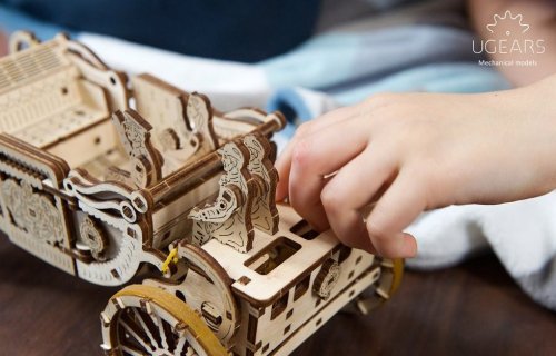 Drevo a pohyb – ako to ide dohromady? Jednoducho! Mechanický pohyb a tradičný materiál spájajú 3D modely UGEARS. Spoznajte tajomstvo prevodov, gumičkových motorov, koliesok a ďalších mechanických súčiastok! Zábavné skladanie bez nutnosti lepenia, prepracované detaily, hladká prevádzka a kvalitné spracovanie - plne funkčné pohyblivé 3D puzzle UGEARS ohromí aj toho, kto nemal fyziku v škole práve v obľube. Do detailu prepracované drevené 3D skladačky ukrajinskej značky UGEARS sú vhodné nielen na rozvoj motoriky a predstavivosti, ale sú aj neskutočne zábavné. Vďaka vysokej kvalite výroby sú pri správnej údržbe modely po zostavení plne funkčné a pohyblivé a umožňujú tak lepšie spoznať tajomstvo mechaniky. 3D puzzle UGEARS sú opatrené podrobným obrázkovým návodom. UPOZORNENIE: Pre správne fungovanie a bezproblémovú prevádzku je potrebné súčiastky, u ktorých je to uvedené v návode (najmä osi), premazať voskom z obyčajnej sviečky, aby bola rotácia vykonávaná s minimálnym trením. Vhodné pre staviteľov vo veku od 14 rokov. Rozmer zloženého puzzle cca 52 x 12 x 13,5 cm