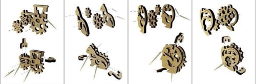 Súprava štyroch drobností, ktorá urobí radosť. Balenie obsahuje drevené 3D puzzle Srdce, Mačky, Traktora a Hlavy.