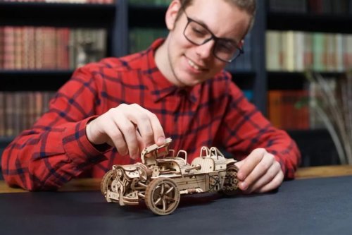 Drevo a pohyb – ako to ide dohromady? Jednoducho! Mechanický pohyb a tradičný materiál spájajú 3D modely UGEARS. Spoznajte tajomstvo prevodov, gumičkových motorov, koliesok a ďalších mechanických súčiastok! Zábavné skladanie bez nutnosti lepenia, prepracované detaily, hladká prevádzka a kvalitné spracovanie - plne funkčné pohyblivé 3D puzzle UGEARS ohromí aj toho, kto nemal fyziku v škole práve v obľube. Do detailu prepracované drevené 3D skladačky ukrajinskej značky UGEARS sú vhodné nielen na rozvoj motoriky a predstavivosti, ale sú aj neskutočne zábavné. Vďaka vysokej kvalite výroby sú pri správnej údržbe modely po zostavení plne funkčné a pohyblivé a umožňujú tak lepšie spoznať tajomstvo mechaniky. Rozmery zloženého modelu: 26,2 x 14 x 9 cm 3D puzzle UGEARS sú opatrené podrobným obrázkovým návodom. UPOZORNENIE: Pre správne fungovanie a bezproblémovú prevádzku je potrebné súčiastky, u ktorých je to uvedené v návode (najmä osi), premazať voskom z obyčajnej sviečky, aby bola rotácia vykonávaná s minimálnym trením Rozmer zloženého puzzle cca 26,2 x 14 x 9 cm