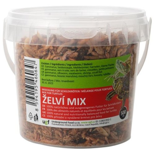 Korytnačí mix je 100% prírodné krmivo pre vodné a suchozemské korytnačky, ktoré obsahuje mix vodných živočíchov a sušený hmyz pre pestrosť a vyváženosť ich potravy.
