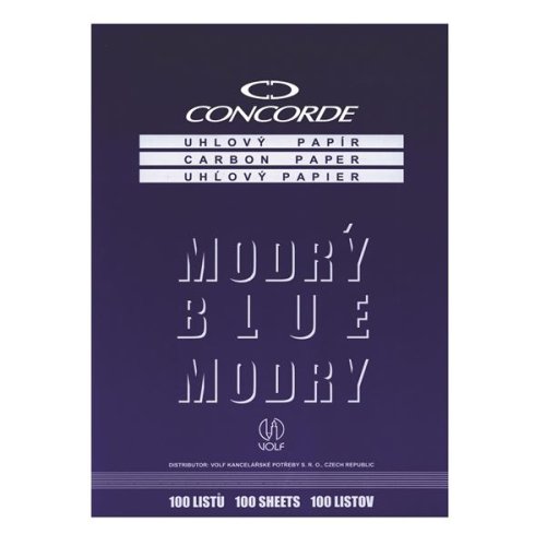 Klasický uhlový papier CONCORDE v modrej farbe Určený na kopírovanie v bežných písacích strojoch aj na ručné písanie Formát: A4 Balenie: 100 listov Celková gramáž: medzi 29 - 30 g/m2 (z toho hodvábny papier: …