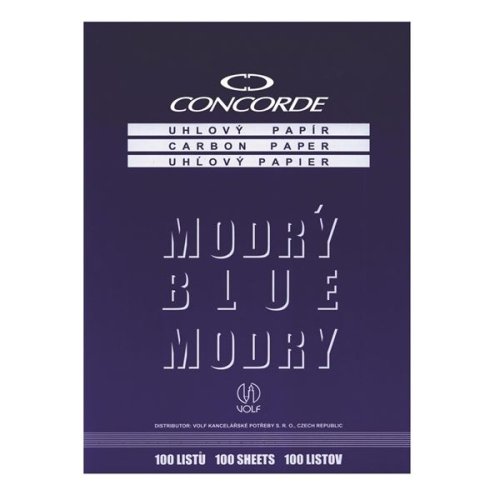 Klasický uhlový papier CONCORDE v modrej farbe Určený na kopírovanie v bežných písacích strojoch aj na ručné písanie Formát: A4 Farba: modrá Balenie: 25 listov Foto ilustračné