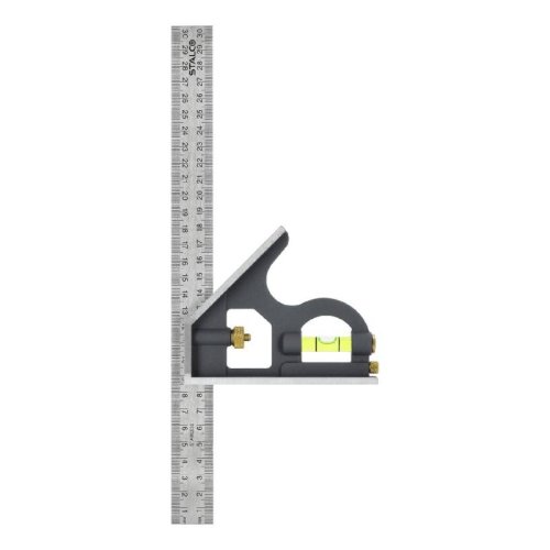 Robustný a odolný uholník na presnú montáž a dielenskú prácu je vybavený nerezovým pravítkom s hrúbkou 2,0 mm a šírkou 25 mm s vyrytým meradlom pre vysokú odolnosť a čitateľnosť, práškovo lakovaná liata hliníková základňa s opracovaným okrajom zaisťuje stabilné a presné vedenie, medená gombík umožňuje bezpečné zaistenie nastavenia, vstavané vertikálne a horizontálne vodováhy s presnosťou 1,0 mm/m zvyšujú funkčnosť a hrot v základni uľahčuje presné sledovanie a značenie.