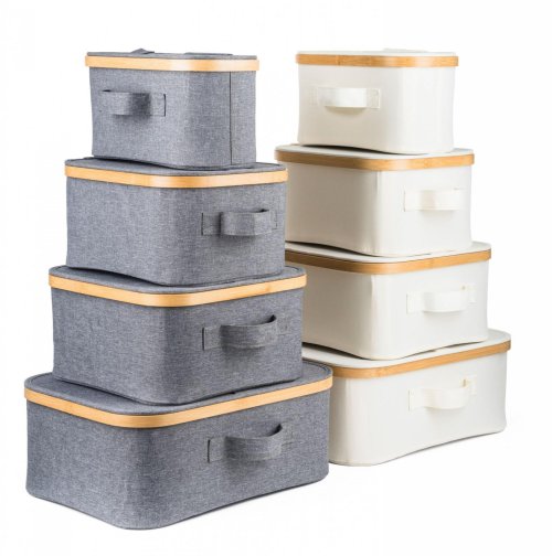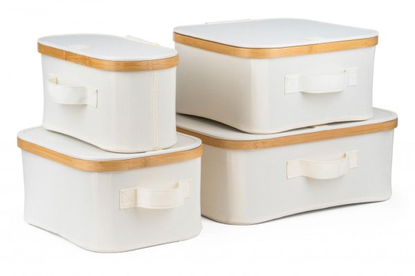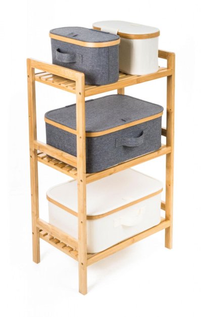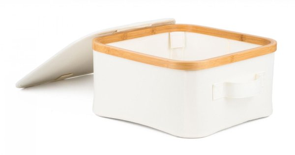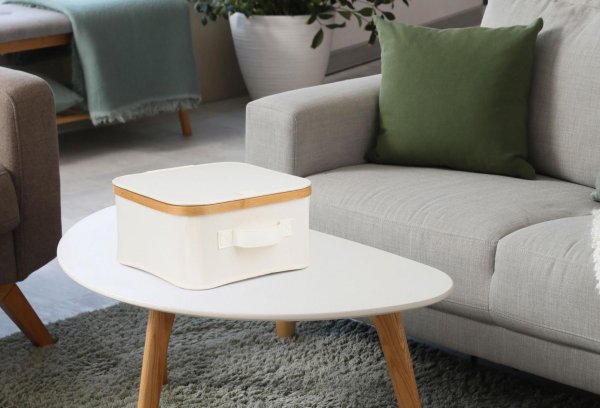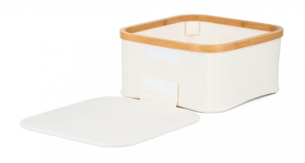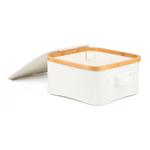 Pozrite sa na skvelé vlastnosti úložného boxu s bambusovou výstuhou, látkovým madlom a odopínacím vekom. Box využijete samostatne alebo ako doplnok bambusových regálov a políc G21.