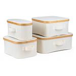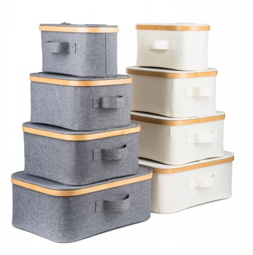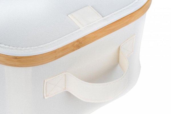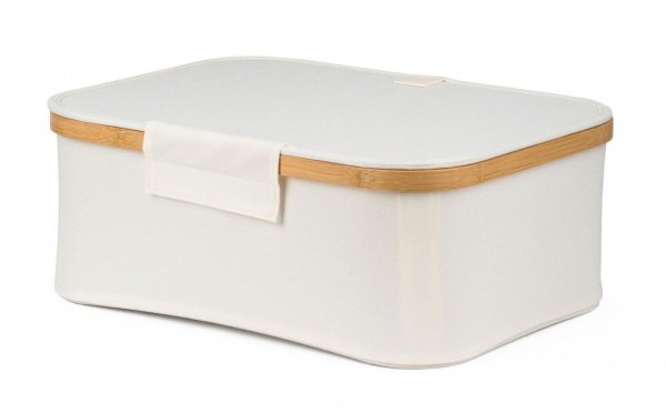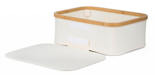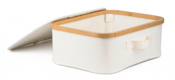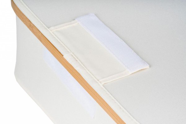 Pozrite sa na skvelé vlastnosti úložného boxu s bambusovou výstuhou, látkovým madlom a odopínacím vekom. Box využijete samostatne alebo ako doplnok bambusových regálov a políc G21.