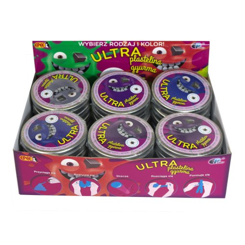 ULTRA Plastelína je unikátna hmota s výnimočnými fyzikálnymi vlastnosťami. Skvele sa tvaruje, naťahuje ako žuvačka, skáče ako hopík, trhá ako papier, funguje ako skvelá antistresová pomôcka. Môžete si vybrať z 8 farebných kombinácií - klasika: fialová, zelená, grafitová, metalíza: tmavo modrá, medená, strieborná, zlatá, fialová. Pre deti od 3 rokov.