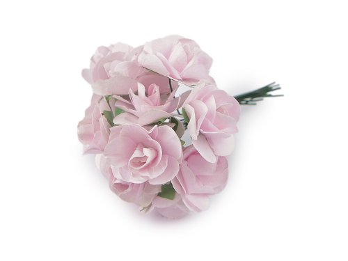 Kvalitné papierové ruže majú jemný romantický vzhľad. Ako stonku slúži ohybný drôt. V jednom zväzku je 12 ks ruží. Použitie: Ruže sú vhodné na rôzne aranžmány a voničky. Vyniknú na vencoch, ikebanách a pod. Ružičky môžete použiť aj jednotlivo, napríklad na scrapbooking a ozdobiť nimi foto rámčeky, albumy, pozvánky alebo priania. Využijete ich tiež napríklad na výrobu čeleniek a fascinátorov do vlasov. [Odtiene farieb ruží sa môžu mierne líšiť.]