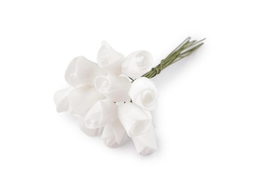 Mini ruže sú vyrobené z penovej gumy. Drôtik, ktorý je ich súčasťou, uľahčuje pripevnenie a manipuláciu. Ružičky využijete do svadobných voničiek, na vence aj na výrobu rôznych dekorácií a kvetinových aranžmánov.