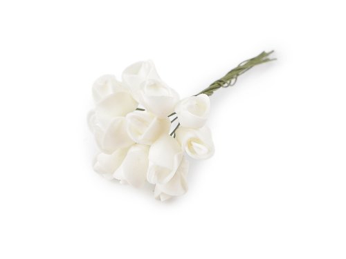 Mini ruže sú vyrobené z penovej gumy. Drôtik, ktorý je ich súčasťou, uľahčuje pripevnenie a manipuláciu. Ružičky využijete do svadobných voničiek, na vence aj na výrobu rôznych dekorácií a kvetinových aranžmánov.