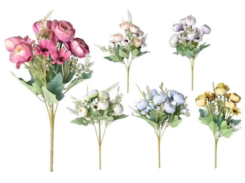 Dekoratívny puget umelých kvetín s dĺžkou 310 mm spája pivonky a kopretiny v atraktívnom farebnom mixe. Kvety sú vyrobené z kvalitného plastu, ktorý verne napodobňuje skutočný vzhľad a zároveň zaisťuje dlhú životnosť bez nutnosti údržby. Puget je vhodný do menších váz, na jarnú či celoročnú výzdobu, aranžmán aj dekoračné projekty. Svojím sviežim vzhľadom dodá interiéru príjemnú a elegantnú atmosféru. Tovar je dodávaný v mixe. Doručovaný tovar je vyberaný náhodne a nie je možné vybrať konkrétne prevedenie.
