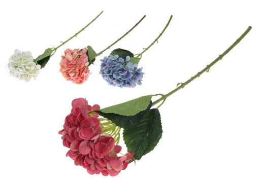 Umelá hortenzia vyrobená z plastu s dĺžkou 670 mm vo farebnom mixe. Jednotlivé kusy sa môžu líšiť odtieňom, čo dodáva kvetine prirodzený a živý vzhľad.