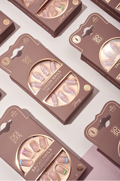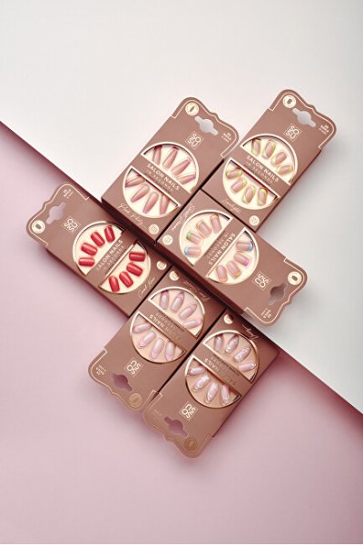Salónové nechty počas niekoľkých sekúnd! Mať dokonalú manikúru je doslova na dosah ruky. Už do pár minút budete mať perfektné nechty ako zo salónu. Balenie obsahuje 30 nechtov v 15 veľkostiach, lepidlo, mini pilník na nechty a tyčinku na manikúru.