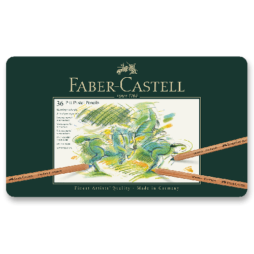 Súprava 36 farieb vysoko kvalitných profesionálnych drevených pastelov v odolnej plechovej krabičke.