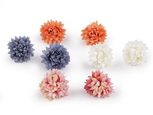 Umelé kvety využijete na aranžovanie kvetinových väzieb, ikeban či vencov. Môžete ich tiež použiť na dozdobenie venčekov do vlasov, čeleniek, fascinátorov i sponiek. Okvetné lístky kvetov sú textilné. Do stonky je možné zasunúť drôt s priemerom 2 mm.