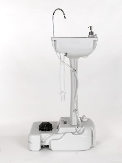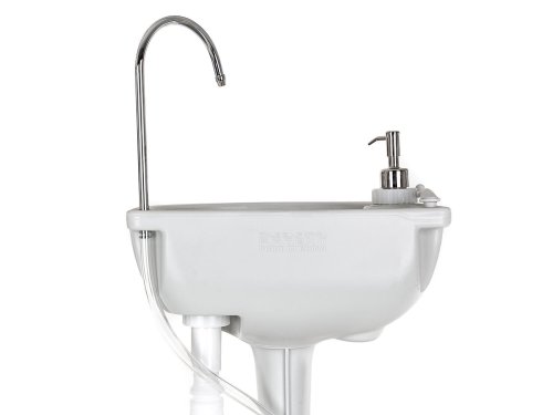 Prenosné stojanové umývadlo je možné využiť na chate, v kempe, v karavane či na farmárskych trhoch, stánkoch s občerstvením, všade tam, kde sú kladené požiadavky na hygienu a potrebu zaistenia tečúcej vody aj bez prístupu k vodovodnej prípojke. Umývadlo je vybavené zásobníkom čistej vody s objemom 17 litrov + zabudovaným zásobníkom na tekuté mydlo s objemom 3 litre a praktickým háčikom na umiestnenie uteráka. Odpadovú vodu je možné pripojenou hadicou odviesť na požadované miesto, či do určenej nádoby. Odporúčame kúpu umývadla spoločne s prenosnou toaletou HAPPY GREEN, na vytvorenie kompletného zázemia. V tomto prípade je možné prepojiť obe položky - odpadovú vodu z umývadla smerovať do hornej nádrže toalety a následne ju využiť na splachovanie.