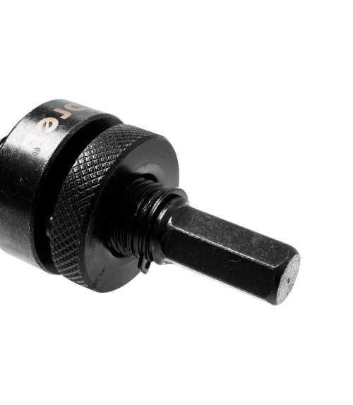 Unášač pre vykružovacie korunky Bimetal 32 - 152 mm.Unášač so stredovým vrtákom pre vykružovacie BiM korunky 32 - 152mm. Korunku požadovaného priemeru naskrutkujte na závit unášača tak, aby do otvorov v korunke mohli zájsť čapy v poistnej matici.